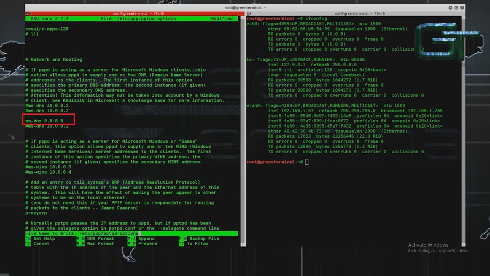 greenterminal pptpd password123 *